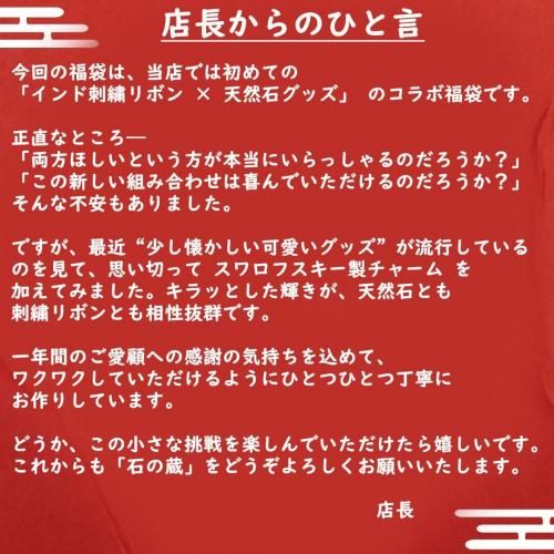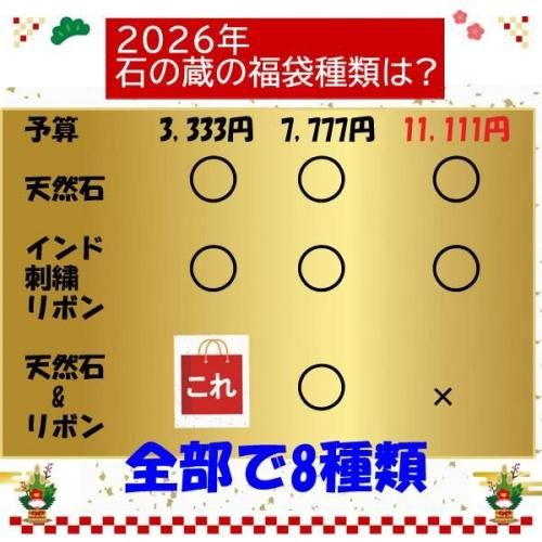 30pt 【石の蔵】天然石×インド刺繍リボン 初出品MIX福袋《3,333円》人気コラボセット 数量限定 定価 3,333円(税込) 3,333円(税込) 数量 − + shopping_cartカートに入れる mail_outline お問い合わせ favorite 型番: 2026fuku-7 ツイート error_outline 特定商取引法に基づく表記 (返品など) share この商品を友達に教える undo 買い物を続ける